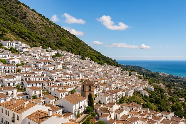 Mijas es un municipio malagueño que armoniza cielo, montaña y mar. Se extiende desde la Sierra de Mijas hasta la costa mediterránea, con paisajes que cautivan y una historia rica que se respira en cada rincón. En su fisonomía destaca el estilo de pueblo blanco andaluz, estrechas calles empedradas, casas encaladas con macetas y balcones que se llenan de flores.